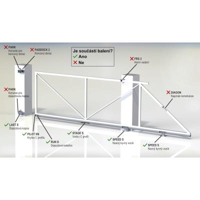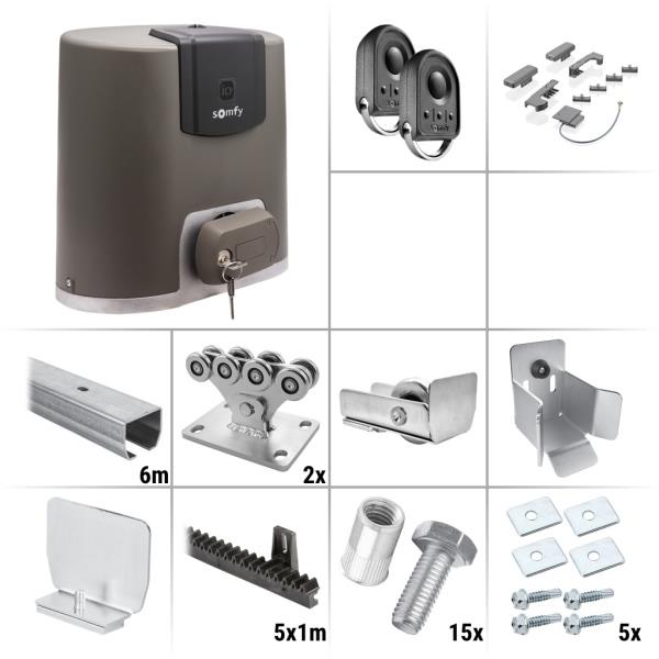 Somfy Elixo 500 3S M io Standard 7.0Z Zostava pojazdových komponentov, pohonu a príslušenstva na výrobu pojazdu a automatizáciu posuvnej samonosnej (nesenej) brány do 4,2 m prejazdnej šírky a celkovej hmotnosti do 425 kg. Pri dokúpení ďalšieho C profilu je možné túto sadu použiť až do 4,5 m šírky prejazdu a 450 kg.
