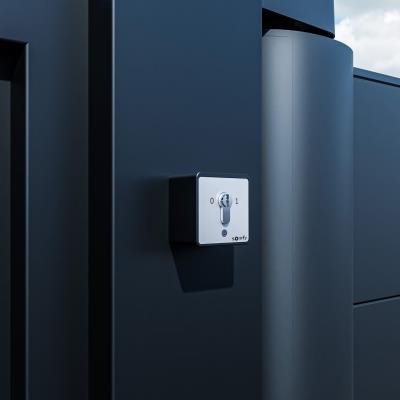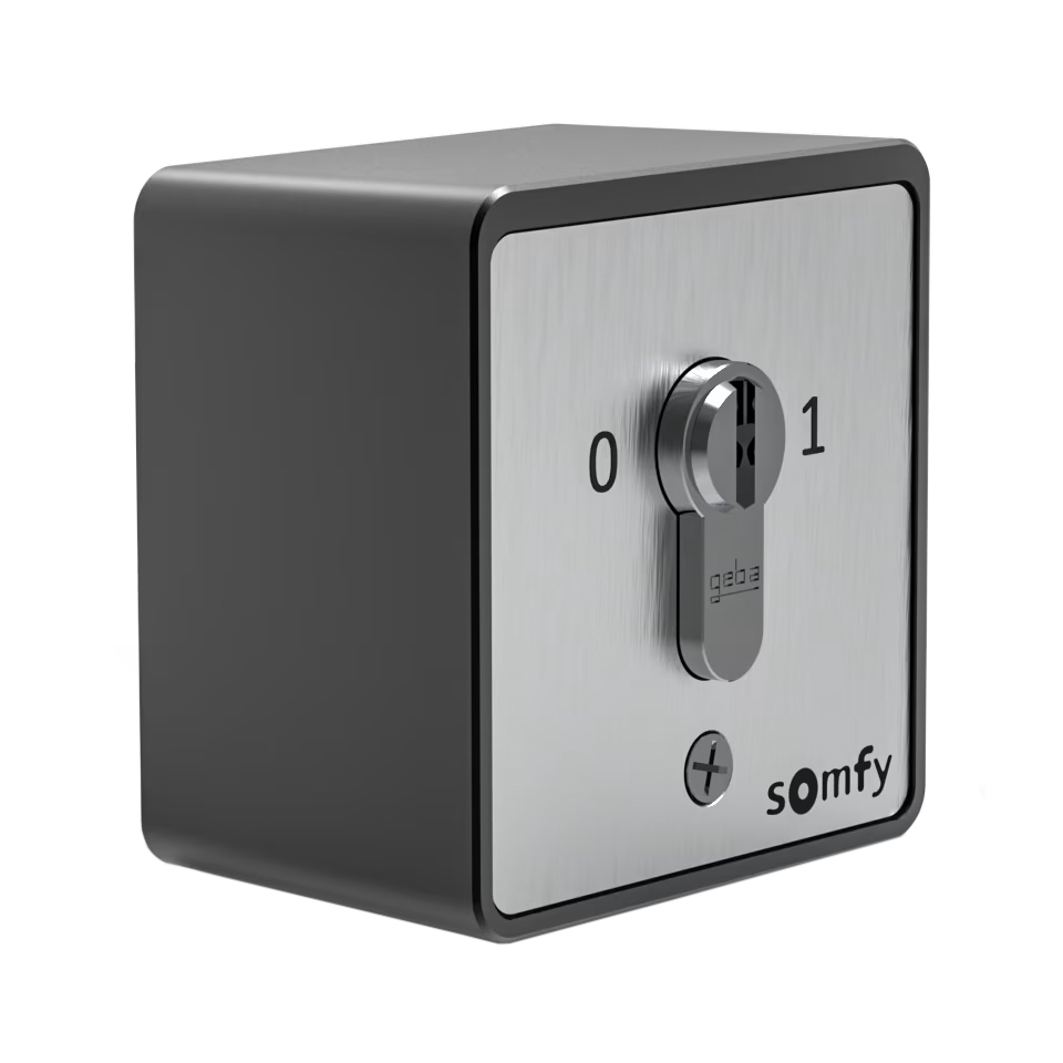 • 1x Somfy Keyswitch 2 (1871150) – kľúčový spínač pre povrchovú montáž, 2pólový, pancierovaný, pre ovládanie pohonu brány a vrát