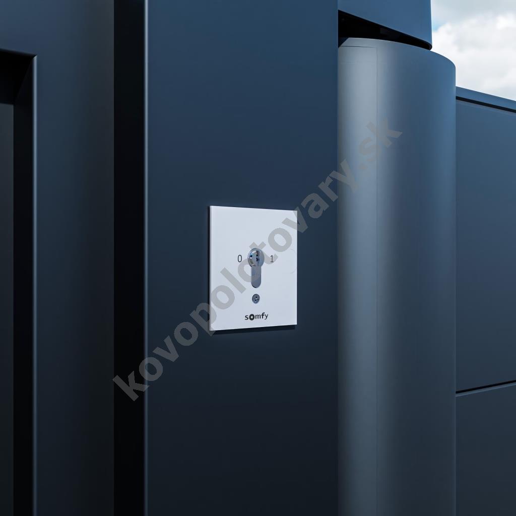• 1x Somfy Keyswitch 2 (1871149) – kľúčový spínač pre zapustenú montáž, 2pólový, pancierovaný, pre ovládanie pohonu brány a vrát