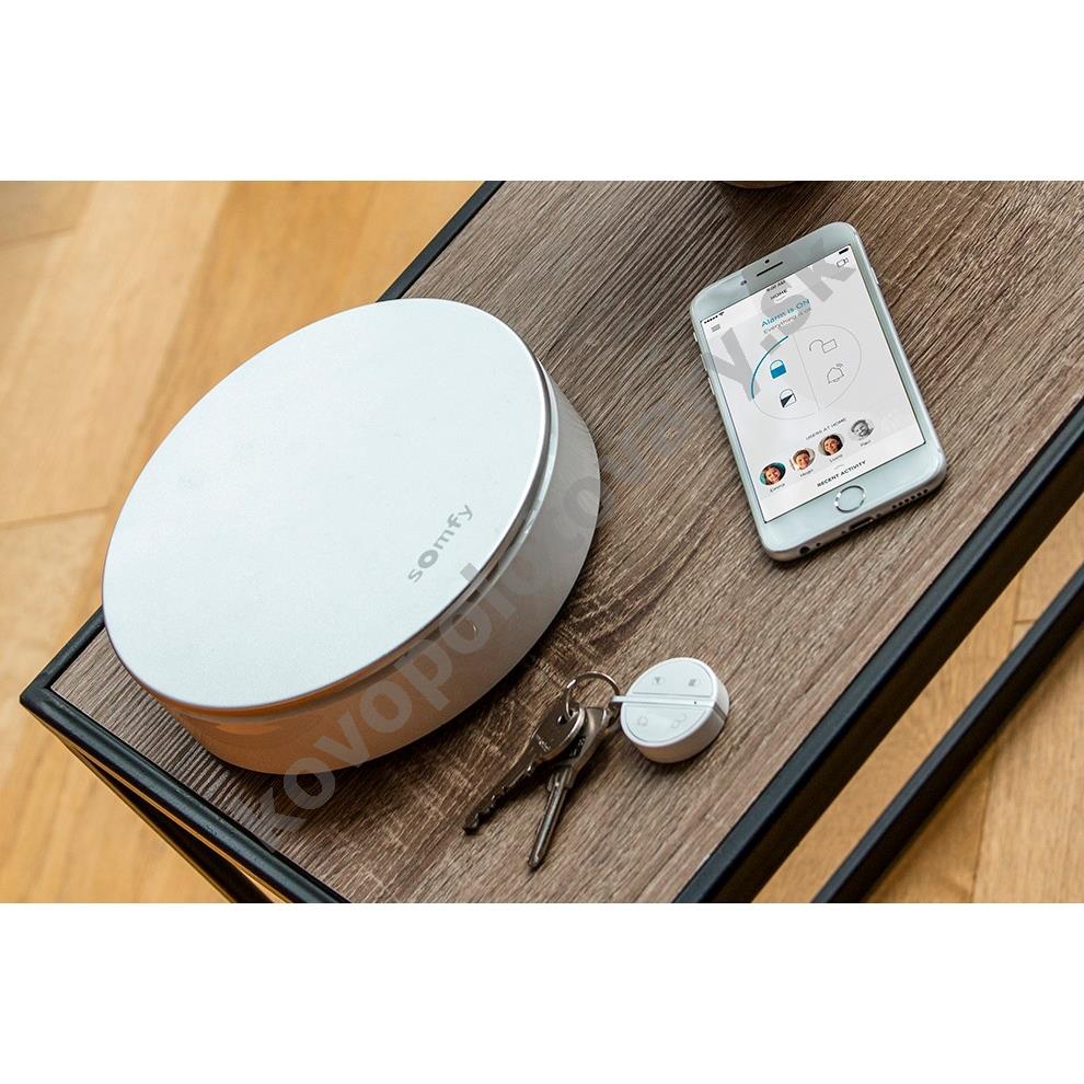 Keď sa budete vracať domov, alarm sa automaticky odblokuje a nehrozí tak nepríjemný falošný poplach. Kľúčenka KeyFob sa pomocou technológie Bluetooth spoja s centrálnou jednotkou Somfy One a alarm vypne. Rovnakým spôsobom funguje pri odchode z domu, kedy alarm aktivujete jedným tlačidlom.