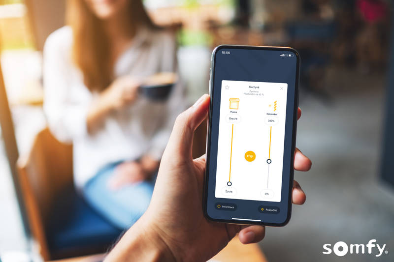 Okrem diaľkového ovládača môžete tienenie ovládať cez mobilnú aplikáciu. Stačí ho napojiť na riadiacu jednotku TaHoma. Perfektnou vychytávkou sú potom automatické scenáre, na základe ktorých sa tienenie bude samo rozťahovať alebo zaťahovať. Rolety sa tak napríklad automaticky roztiahnu v čase, keď vstávate, alebo ich v celom dome jediným tlačidlom zatiahnete, keď sa ponáhľate preč.