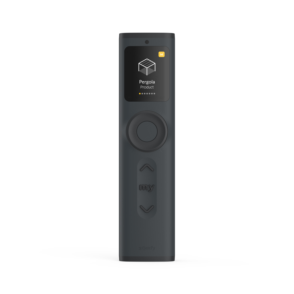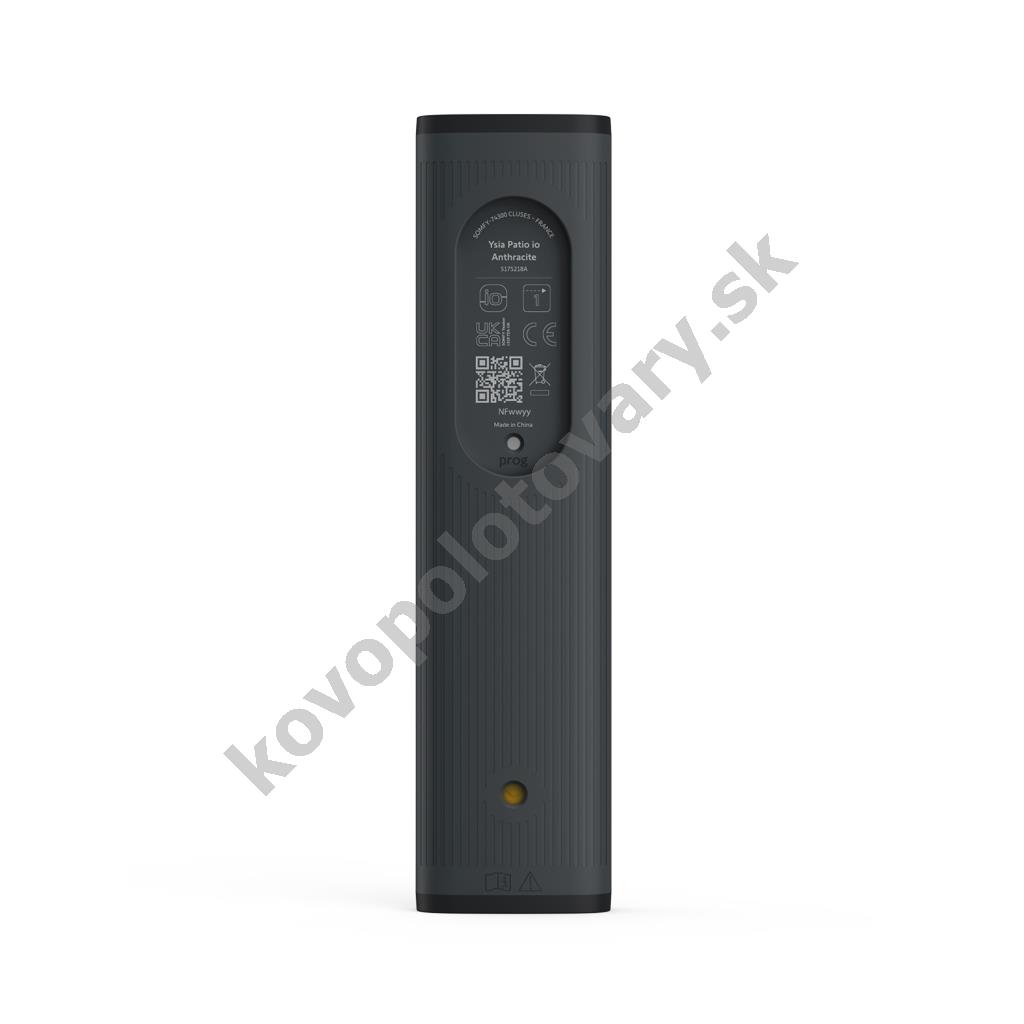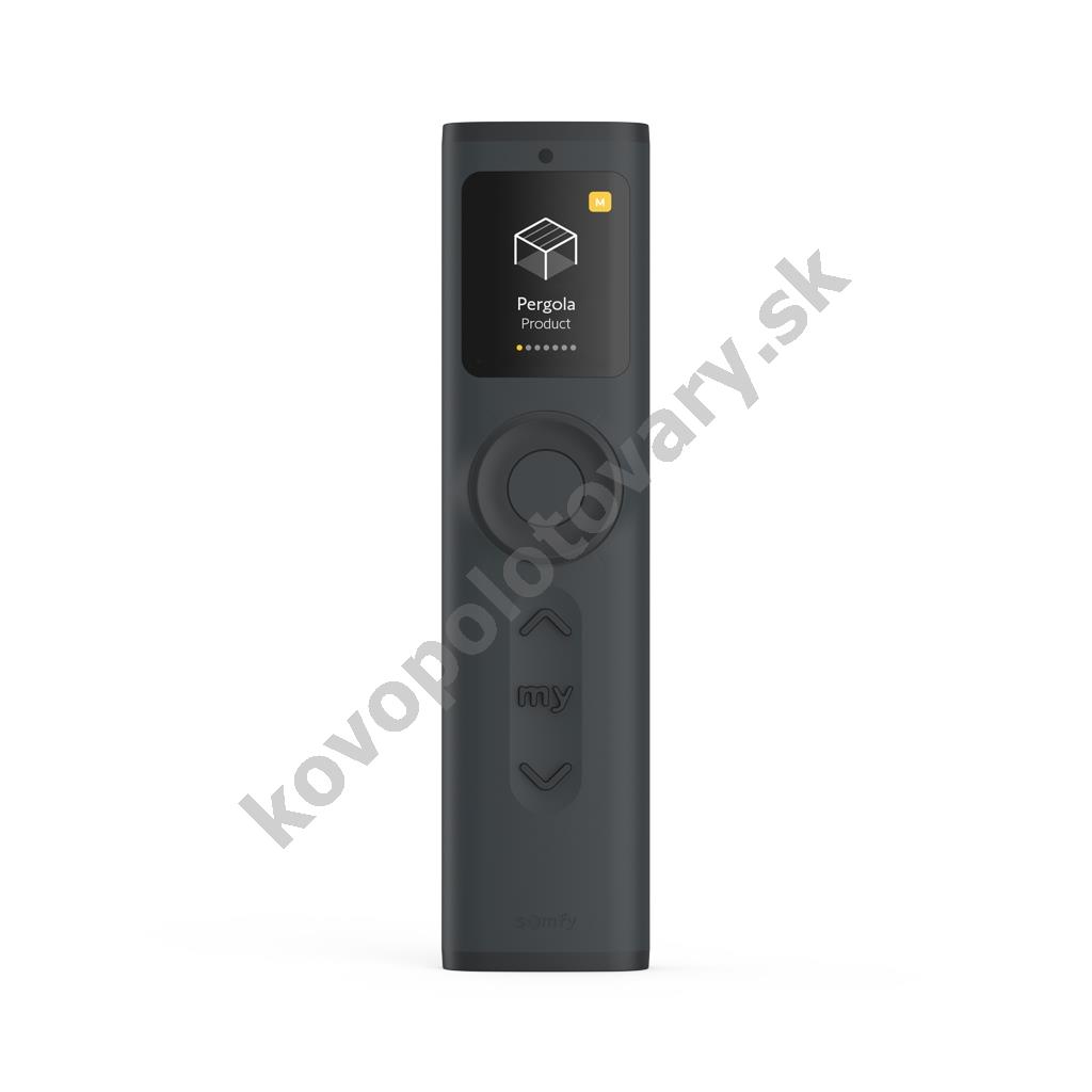 Somfy Ysia Patio io Anthracite (1871290) Prenosný diaľkový ovládač s displejom na ovládanie motorizovaných tieniacich prvkov, pohonov, osvetlenia a ďalších zariadení s technológiou io-homecontrol. Umožňuje lokálne aj centrálne riadenie až 16 zariadení, skupín alebo scén. Vhodný aj na naklápanie lamiel, stmievanie a reguláciu svetla na terase.