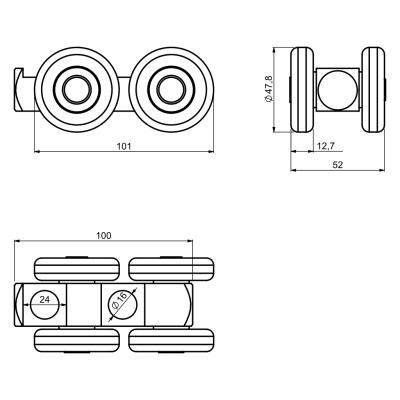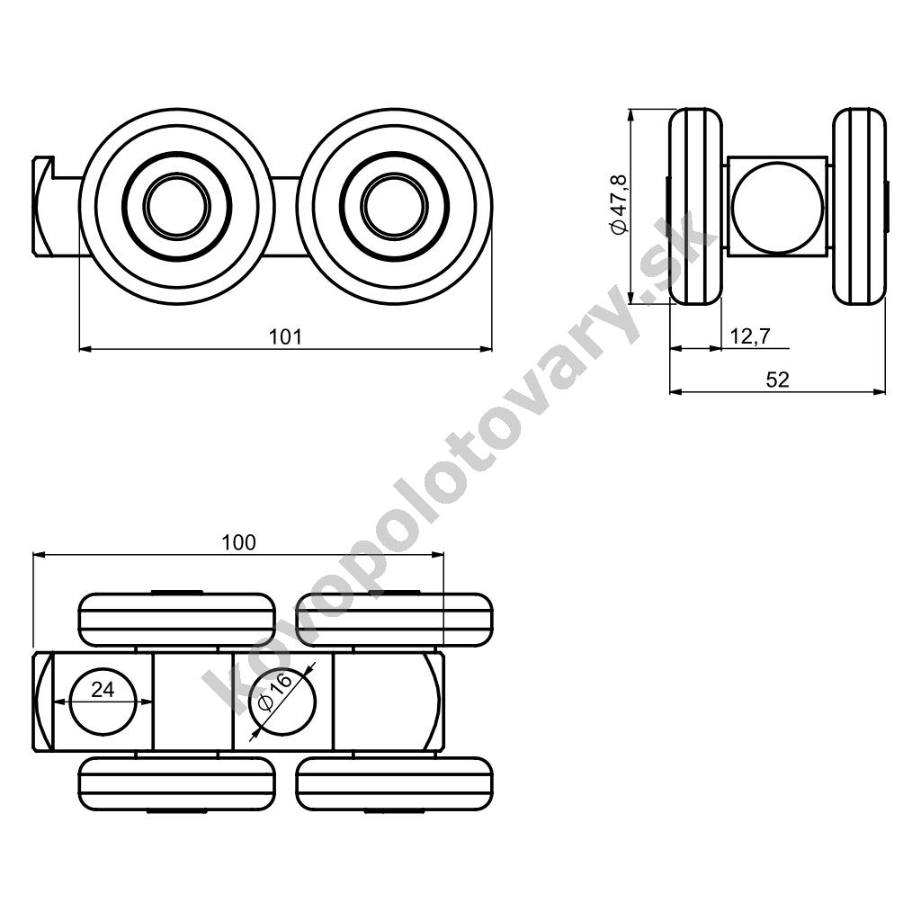 SPEED-C Nosný ložiskový vozík pre posuvné závesná vráta. Technické informácie: Počet koliesok: 4 Pre...