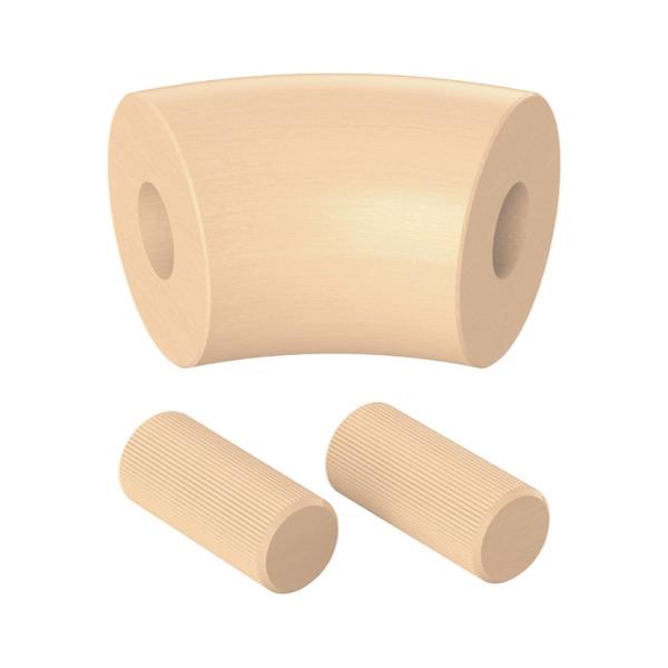 Spojka (koleno, přechod) madla 45° pr.42 mm, výška 65 mm, nelakovaný přírodní buk, pro nerezové zábradlí a schodiště