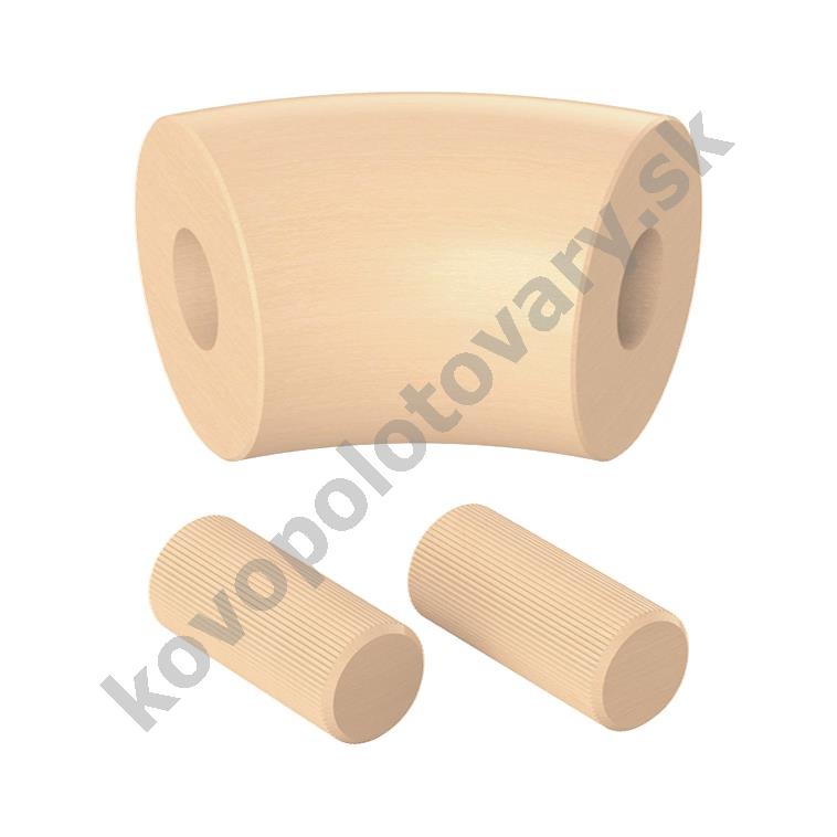 Spojka (koleno, prechod) madlá 45° pr.42 mm, výška 65 mm, nelakovaný prírodný buk, pre nerezové zábradlie a schodisko
