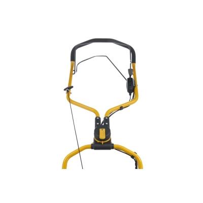 Model 748 V je vybavený revolučnou rukoväťou Fulcrum, ktorá prináša úplne novú úroveň ergonómie. Rukoväť je možné výškovo nastaviť a vďaka unikátnemu kĺbu tiež vyosiť o 25° do ľavej strany, čo umožňuje bezpečné kosenie pozdĺž stien, plotov a pod kríkmi bez toho, aby obsluha prichádzala do kontaktu s týmito prekážkami. Systém kosenia 4v1 ponúka zber do 60-litrového hybridného koša s indikátorom naplnenia, mulčovanie, bočné vyhadzovanie a zadné vyhadzovanie. Veľké kolesá (200/280 mm) s guľôčkovými ložiskami a mäkkým behúňom zaisťujú hladký pohyb. Pre jednoduchú údržbu po kosení je k dispozícii integrovaná umývacia linka – port na pripojenie záhradnej hadice na vyčistenie sekacieho ústrojenstva.