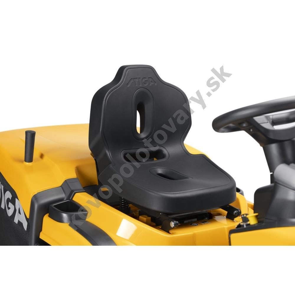 - Komfortná výbava: Ergonomický volant STIGA a nastaviteľné sedadlo STIGA Classic zabezpečujú pohodlie aj pri dlhotrvajúcej práci.