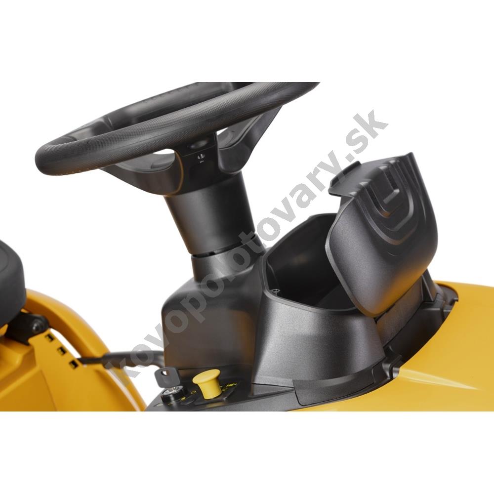 - Hydrostatické ovládanie: Plynulá zmena rýchlosti bez radenia umožňuje obsluhe sústrediť sa plne na kosenie a smer jazdy.
