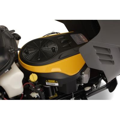 3, ktorý vďaka usporiadaniu V-Twin ponúka plynulejší chod, vyšší krútiaci moment a nižšie prevádzkové teploty v porovnaní s jednovalcovými motormi. Široké žacie ústrojenstvo so záberom 98 cm a dvoma nožmi zabezpečuje perfektný strih, zatiaľ čo hydrostatická prevodovka ovládaná pedálom zaručuje plynulé manévrovanie v členitom teréne.