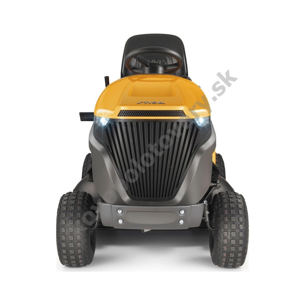 - Vysoký výkon STIGA Twin: Dvojvalcový motor s objemom 708 cm3 ponúka hladký chod, nízke emisie a dostatočnú silu na kosenie aj vo svahovitom teréne.