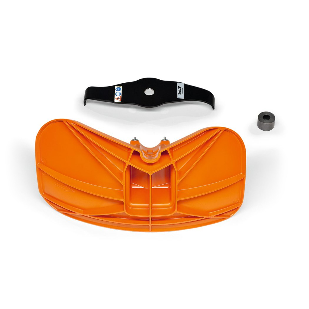 Sada štiepkovacieho noža, ochranného krytu a montážnych dielov pre krovinorezy STIHL. Umožňuje efektívne štiepkovanie a odstraňovanie buriny či hustých krovín. Zaisťuje bezpečnú a pohodlnú prácu pri údržbe rozsiahlejších plôch.