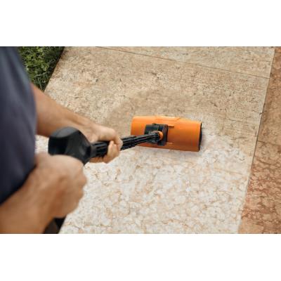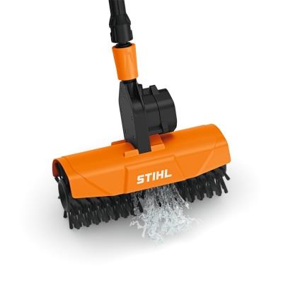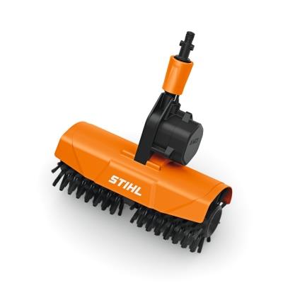 Rotačný umývací valec s ochranným krytom na použitie s elektrickými vysokotlakovými čističmi STIHL, určený na čistenie rôznych citlivých povrchov. Táto kefa je vhodná najmä na čistenie terás s dreveným alebo kamenným obkladom, fasád a garážových brán.