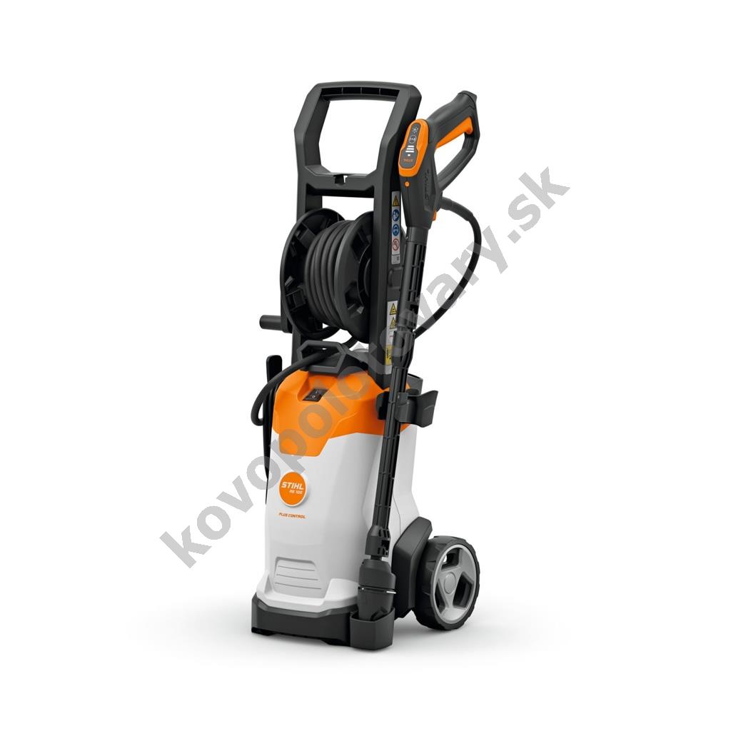 STIHL RE 100.0 PLUS CONTROL (RE02 011 4546) Robustný elektrický tlakový čistič s podvozkom na kolieskach a s navíjacím hadicovým bubnom, vhodný na všestranné použitie v okolí domu a na záhrade. Vapka je vybavená funkciou s možnosťou nastavenia tlaku na LED paneli, predĺženou dĺžkou hadice, odolnou skriňou s kolieskami a rýchlospojkou pre rýchlu výmenu trysky.