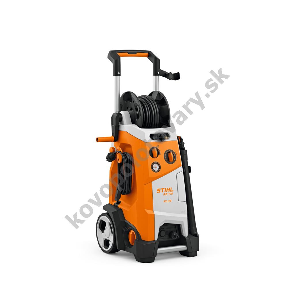 STIHL RE 170 PLUS (RE01 011 4541) Robustný elektrický tlakový čistič s podvozkom na kolieskach a s navíjacím hadicovým bubnom, vhodný na všestranné použitie v okolí domu, na záhrade alebo v priemysle. Vapka je vybavená čerpadlom s mosadznou hlavou a keramickým piestom, zosilnenou hadicou s predĺženou dĺžkou, hliníkovou teleskopickou rukoväťou, odolnou skriňou s kolieskami a rýchlospojkou na rýchlu výmenu trysky.