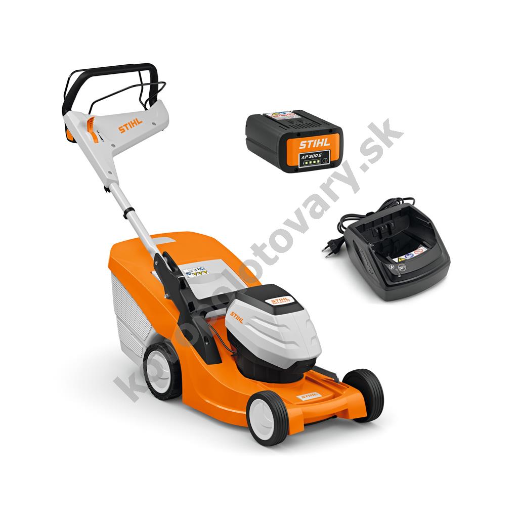 AKU systém: AP; Materiál těla: polymer; Max. sečená plocha (m2): 420; Objem sběrného koše (l): 52; Pojezd: s nastavitelnou rychlostí; Prodejní délka: 2,01; Šířka záběru: 41; Typ pohonu: akumulátorový; Výbava: centrální nastavení výšky; jednoramenná rukojeť; koš s indikátorem naplnění; mulčovací nůž; snadno sklopná rukojeť; výškově nastavitelná rukojeť; Výkon (W): 1450; Výrobce: STIHL;
