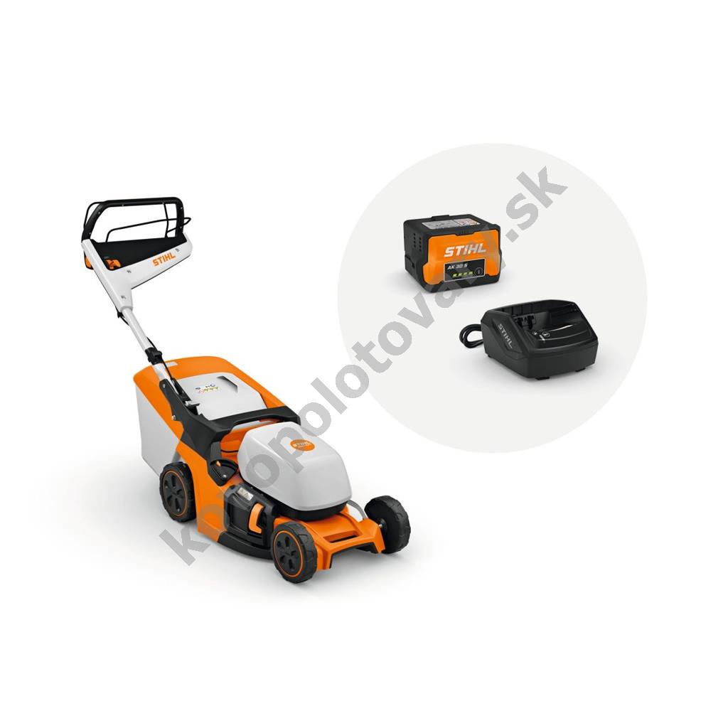 AKU systém: AK; Materiál těla: polymer; Max. sečená plocha (m2): 350; Objem sběrného koše (l): 52; Pojezd: s nastavitelnou rychlostí; Prodejní délka: 2,01; Šířka záběru: 41; Typ pohonu: akumulátorový; Výbava: centrální nastavení výšky; jednoramenná rukojeť; koš s indikátorem naplnění; mulčovací nůž; snadno sklopná rukojeť; výškově nastavitelná rukojeť; Výkon (W): 1200; Výrobce: STIHL;