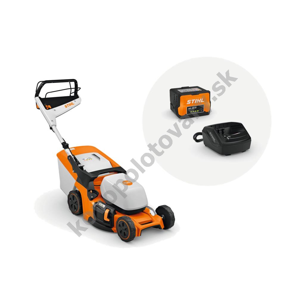 AKU systém: AK; Materiál těla: polymer; Max. sečená plocha (m2): 340; Objem sběrného koše (l): 52; Pojezd: s nastavitelnou rychlostí; Prodejní délka: 2,01; Šířka záběru: 46; Typ pohonu: akumulátorový; Výbava: centrální nastavení výšky; jednoramenná rukojeť; koš s indikátorem naplnění; mulčovací nůž; snadno sklopná rukojeť; výškově nastavitelná rukojeť; Výkon (W): 1200; Výrobce: STIHL;