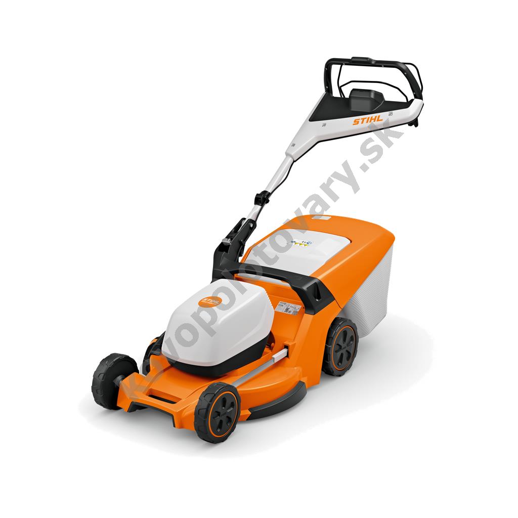 AKU systém: AP; Materiál těla: polymer; Max. sečená plocha (m2): 450; Objem sběrného koše (l): 55; Pojezd: s nastavitelnou rychlostí; Prodejní délka: 2,01; Šířka záběru: 51; Typ pohonu: akumulátorový; Výbava: centrální nastavení výšky; jednoramenná rukojeť; koš s indikátorem naplnění; mulčovací nůž; snadno sklopná rukojeť; výškově nastavitelná rukojeť; Výkon (W): 1600; Výrobce: STIHL;
