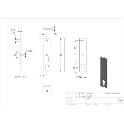Zámkový nerezový štítek - krytka rozeta 10678 bez otvoru pro kliku, 156x32 x tl.6 mm