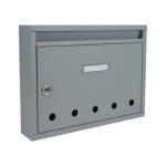 Barva schránky: Stříbrná RAL 9006; Hloubka schránky: 300; Jmenovka: Ano; Kamera: Ne; Komunikátor: Ne; Materiál: ocel; Montáž: na stěnu; Počet schránek v sestavě: 5; Povrchová úprava: barveno; pozinkováno; Šířka schránky: 400; Venkovní použití: Ano; Vhoz zásilek: vpředu; Výběr zásilek: vpředu; Výrobce: Richter Czech; Výška schránky: 450; Zvonkové tlačítko: Ne;