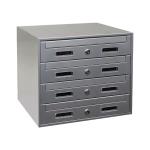 Barva schránky: Stříbrná RAL 9006; Hloubka schránky: 300; Jmenovka: Ano; Kamera: Ne; Komunikátor: Ne; Materiál: ocel; Montáž: na stěnu; Počet schránek v sestavě: 4; Povrchová úprava: barveno; pozinkováno; Šířka schránky: 400; Venkovní použití: Ano; Vhoz zásilek: vpředu; Výběr zásilek: vpředu; Výrobce: Richter Czech; Výška schránky: 350; Zvonkové tlačítko: Ne;